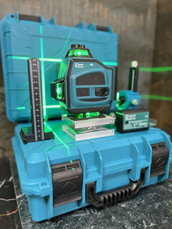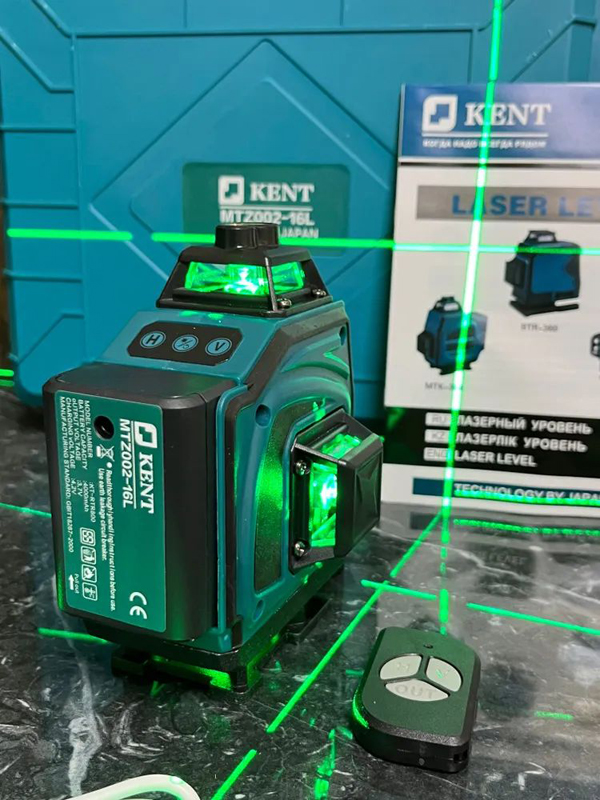 Лазерный уровень KENT 16 линий 360° - профессиональный инструмент для точных измерений, отлично подходящий для использования как дома, так и в строительных работах. Аппарат идеален для определения горизонтальных и вертикальных плоскостей, измерения высот, создания ровных линий и углов. Подходит для выравнивания полов, потолков, плитки, установки дверей и монтажа мебели.