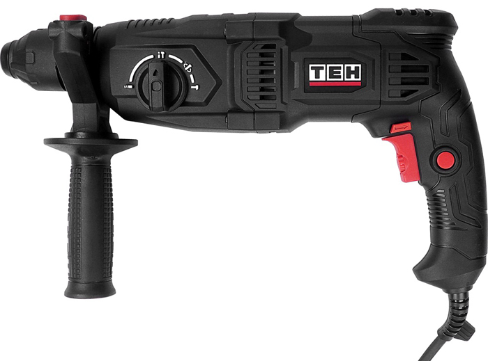 Перфоратор предназначен для бурения отверстий, штробления пазов, разрушения твердых материалов, таких как: кирпич, бетон, природный и искусственный камень. В качестве рабочих насадок в перфораторе могут использоваться: бур, пика, зубило.