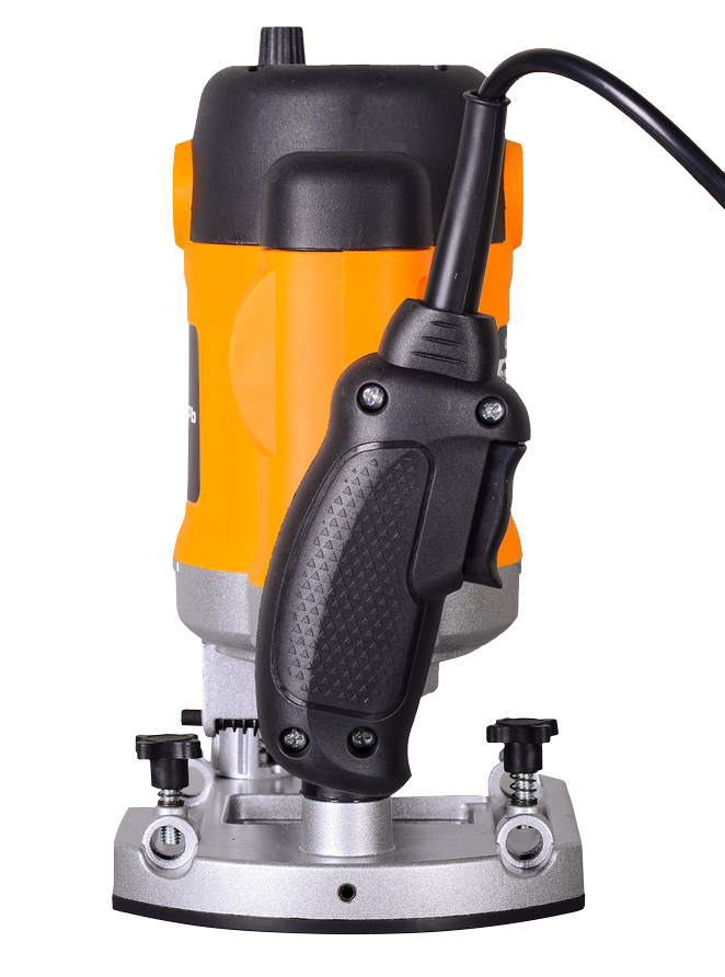 Данный инструмент не предназначен для промышленного использования. Модель используется для фигурной обработки древесины на заданную глубину. Представленная машина является самой мощной в данной серии. Боковые прорезиненные рукоятки обеспечивают надёжный захват инструмента и снижение вибрации во время работы. Специальная шкала позволяет устанавливать необходимую глубину обработки заготовки. Прочная подошва с надёжными фиксаторами. Инструмент можно настроить под конкретную задачу путём изменения числа оборотов.