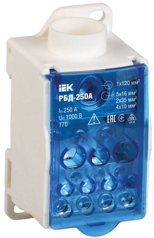 Распределительные блоки РБД предназначены для использования в качестве клеммного зажима при подключении к проводнику большего сечения нескольких проводников меньшего сечения, для создания упорядоченных систем распределения в шкафах, для организации главной заземляющей шины.