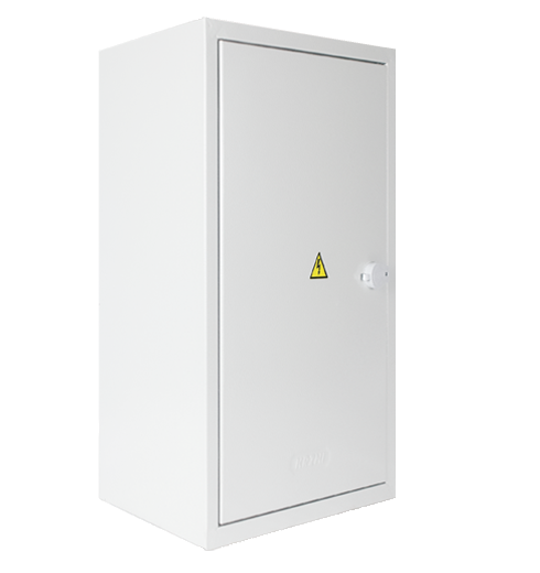 Сварной металлический корпус со съемной монтажной панелью. Дверца корпуса запирается на замок. Ключ замка имеет единый секрет. Корпуса со степенью защиты IP54, имеют на дверце уплотнение из двухкомпонентного герметика и пыле-влагонепроницаемый замок.