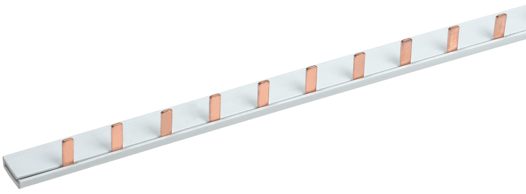 Шины с шагом 18 мм предназначены для коммутации аппаратуры шириной, кратной одному модулю, шины с шагом 27 мм предназначены для коммутации изделий шириной, кратной полутора модулям. Шины, рассчитанные на номинальный ток 100 А, могут быть использованы с номинальным током 125 А, если вводной автомат подключать по центру. Для полуторамодульных шин имеются боковые заглушки.