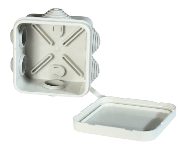 Коробка разветвительная для открытого монтажа предназначена для организации мест коммутации проводов и кабелей, а также возможного размещения в них различных устройств: клеммники, рейки, платы, малогабаритные приборы и т.п. Для этого на дне коробок предусмотрены направляющие, на которые возможно крепление вышеперечисленных устройств при помощи самонарезающих винтов.