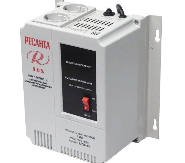 Стабилизатор напряжения предназначен для выравнивания входного напряжения и защиты приборов от перепадов напряжения с суммарной мощностью до 1 кВт. Устройство оснащено фильтрами сетевых помех, предотвращающими искажение частотной синусоиды, микропроцессорным управлением и цифровым индикатором напряжения, на котором отображаются параметры напряжения. Превышение пределов поддерживаемого входного напряжения автоматически отключает подачу питания. Прочный корпус защищает внутренние узлы аппарата от повреждений. Данный стабилизатор может обеспечивать стабильным питанием - телевизор, ресивер, DVD проигрыватель, кассовый аппарат, газовый котел.