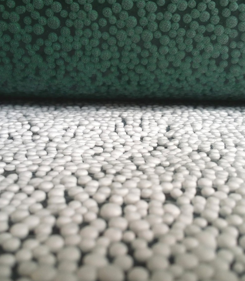 Эластичные сферы – гранулы пенополиэстирола не накапливающие влагу, создают пространство между верхней и нижней пленкой подложки, образуя системы воздушных каналов за счет которых происходит вентиляция и отвод избыточных накопившихся водяных паров.