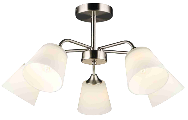 Люстра - это стильный и функциональный элемент интерьера. Арматура цвета «хром» изготовлена из металла, что обеспечивает прочность и долговечность конструкции. Люстра оснащена пятью лампами.