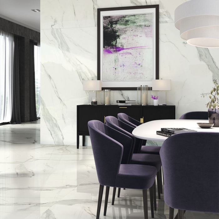 Полированная поверхность керамогранита Patmos усиливает декоративный эффект, добавляя глубину цвета. Особенно выигрышно этот эффект смотрится в сочетании с текстурой каррарского мрамора. Благодаря своей универсальности текстура мрамора подходит почти для любого стиля. Плиты Patmos очень хорошо будут смотреться в современных проектах. Они подчеркивают изящную простоту помещения и помогают создать спокойную непринужденную обстановку.