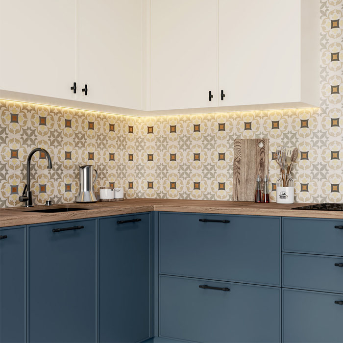 Коллекция Design Art подойдет для создания эффектного и оригинального настенного или напольного покрытия. Классическая пэчворк плитка благодаря своей стилизации после укладки почти лишена шовных соединений. Выразительные рисунки коллекции представлены в уютных и ярких оттенках, поверхности плитки выглядят слегка потёртыми. Базовые модели линейки выполнены в спокойной аутентичной палитре. Такая вариативность коллекции дает возможность реализовать концепты от стилей ретро, кантри, пэчворк до современных направлений.