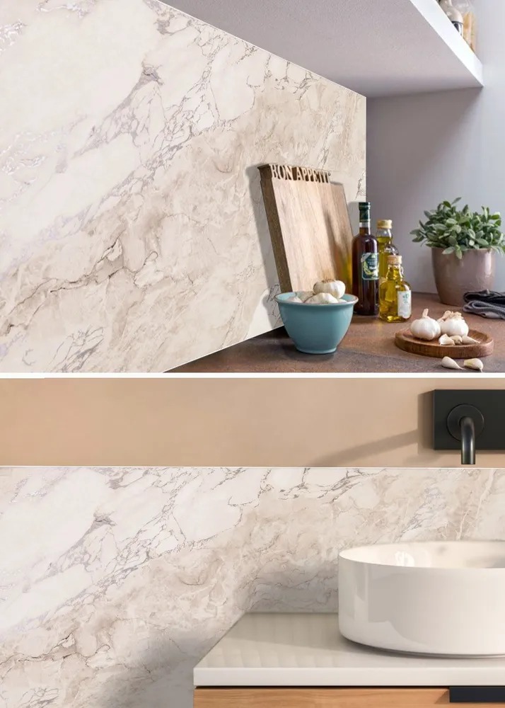 Панели Гибкий мрамор из ПВХ позволяют создать эффект натурального камня на стенах без сложного монтажа и тяжелого ухода. Материал устойчив к влаге и загрязнениям, легко моется и подходит для применения в кухнях, ванных комнатах и других помещениях с повышенной влажностью.