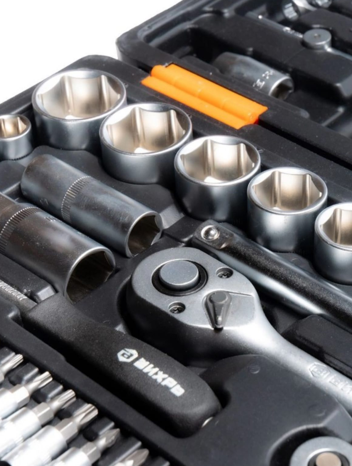 Набор инструментов содержит все основные предметы, необходимые при обслуживании и ремонте машин и различной техники. Включает в себя все необходимое для работы с крепежом различного формата.