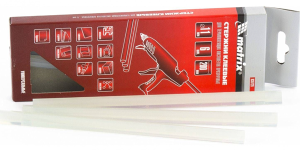 Стержни клеевые применяются для склеивания изделий из дерева, металла, пластика, ткани, кожи, стекла, керамики, бумаги, картона, резины и других материалов. Наилучшая склейка достигается у шершавых, пористых и имеющих высокую адгезию поверхностей.