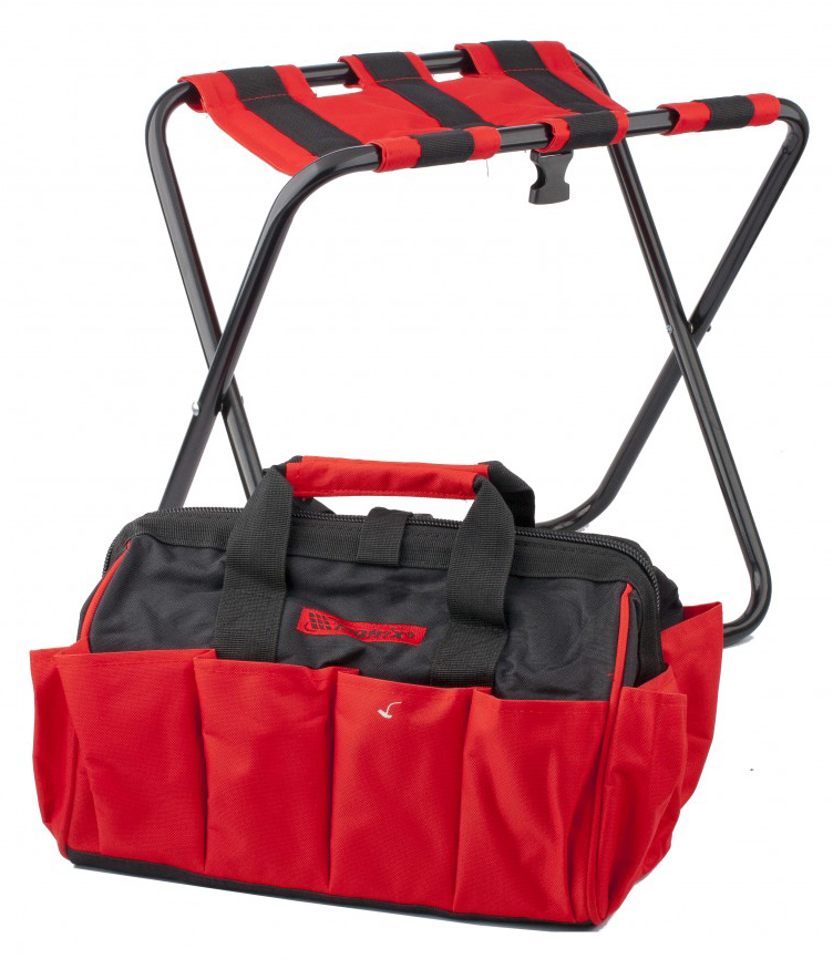 Сумка-стул складная используется как для хранения и транспортировки инструментов, так и для работ на дачном участке, рыбалки и отдыха на природе. Стул выдержит нагрузку массой не более 90 кг. Сумка содержит карманы разной вместимости, что позволяет удобно распределить инструменты различного размера. Сумка выполнена из надежного синтетического материала, имеет длительный период эксплуатации. Сумка-стул складывается, компактна при хранении.