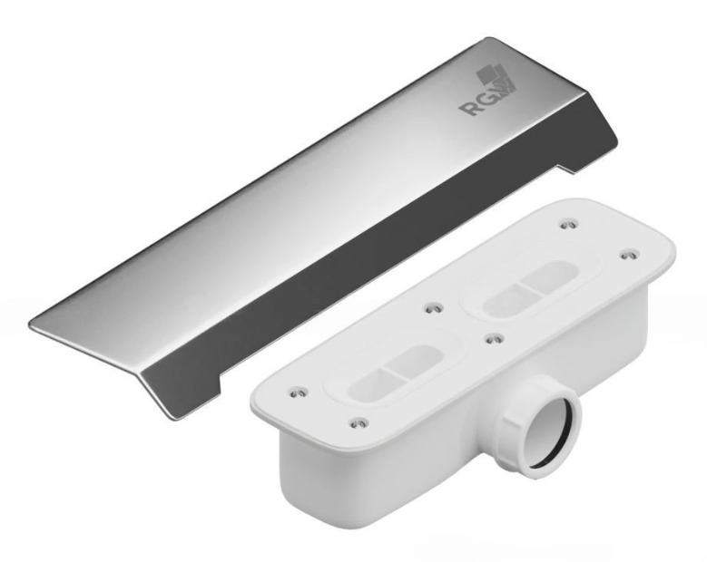 Сифон с накладкой для каменных поддонов серии RGW STA. Стальная накладка толщиной 2 мм покрыта высококачественной порошковой краской.
