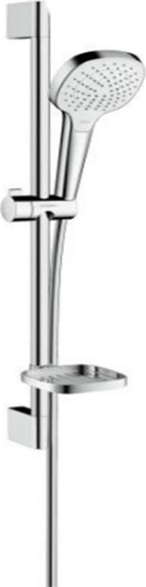 Душевой набор состоит из: ручного душа, душевой штанги, шланга для душа, ползунка и мыльницы. Технология Air Power от Hansgrohe позволяет смешивать воду с воздухом, что делает капли объемнее, легче и мягче. Таким образом, становится возможным более эффективное использование воды. Аэраторы смесителя и струйные форсунки оснащены эластичными силиконовыми вставками.