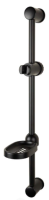 Душевая стойка из нержавеющей стали, в комплекте с держателем для лейки и мыльницей. Держатель даёт возможность регулировки высоты и угла наклона душевой лейки. Диаметр стойки 1,9 см, расстояние между креплениями 52 см.