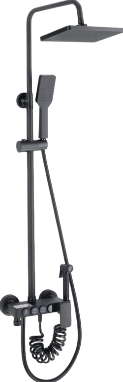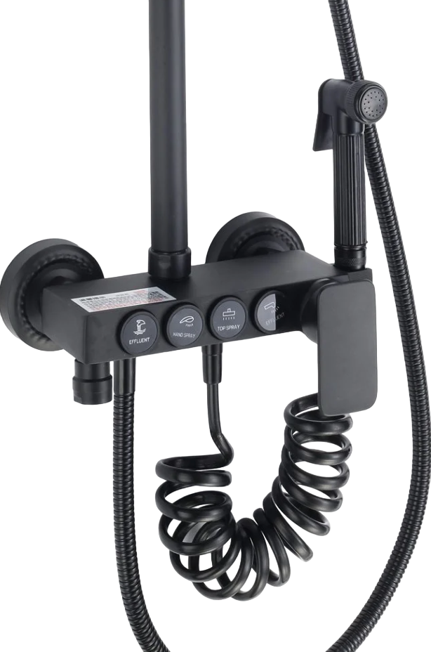 Душевая система с тропическим душем из латуни. Направление потока воды регулируется с помощью 4-х нажимных переключателей. Тропический душ, ручная лейка, гигиеническая лейка, смеситель, меняющий направление. Материалы соответствуют нормам ГОСТ и СанПин, что гарантирует безопасность применения и долгосрочный срок службы.