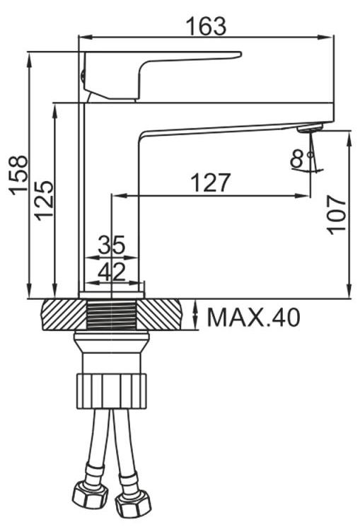 Смеситель выполнен в современном стиле и имеет нейтральный цвет. Корпус сделан из латуни - долговечного, прочного и надёжного материала. Имеет керамический картридж, который смешивает потоки холодной и горячей воды. Помимо этого понижается шум от импульсов подачи воды. Монтаж модели производится на одно отверстие для смесителя.