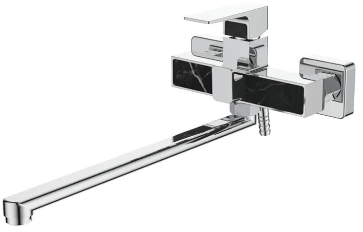 Смеситель для ванны успешно сочетаются строгий лаконизм простых форм деталей. Такой контраст делает модель оптимальной для интерьеров в современном стиле, сочетающих функционализм и комфорт для пользователей. Конструкция модели основана на использовании керамического смешивающего картриджа, имеющего повышенный ресурс и пропускную способность, изготовлен из высококачественной латуни с хромированным покрытием, аэратор максимально увеличивает насыщенность воды кислородом, аэрация струи происходит за счет увеличения площади потока. Удобная эргономичная ручка смесителя цвета «хром» имеют форму, удобную для захвата ладонью и значительные размеры, что позволяет уменьшить усилия, необходимые для изменения температуры и напора воды.