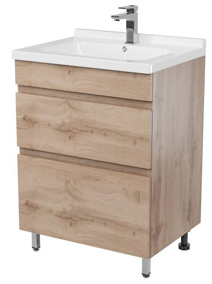 Корпус тумбы выполнен из высококачественной ламинированной ДСП что обеспечивает долговечность и устойчивость к влаге. Цвет Дуб сонома - это универсальное решение, которое впишется в любой интерьер, придавая ему уют и теплоту. Текстура дерева имитирована с высокой точностью, создавая эффект натурального материала. Вместительные два выдвижных ящика на телескопических направляющих обеспечивают плавный и бесшумный ход.