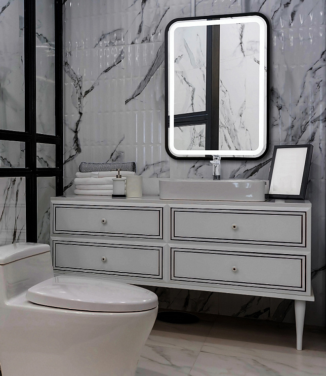 Зеркало с LED-подсветкой в стильной раме черного цвета. Модель сделана из стекла высшего качества M0 (влагостойкое, минимальные оптические искажения). Изделие оснащено сенсорным выключателем с функцией плавного диммирования, с запоминанием последнего значения. Короткие касания светящейся области включают/выключают подсветку, длительное касание меняет яркость свечения. LED-подсветка выдерживает до 50 тыс. часов работы в непрерывном режиме.