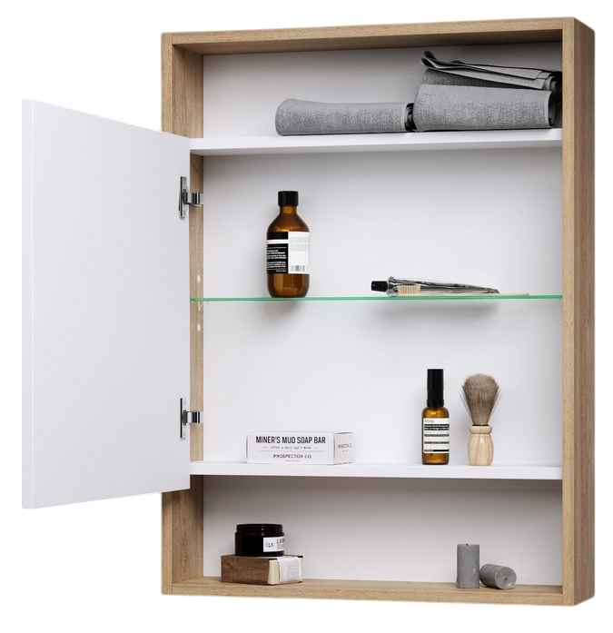 Корпус изделия выполнен из влагостойкой ЛДСП со структурой дерева в цвете «дуб балтийский». Отделка под природный материал сделает помещение уютнее, привнесет в него нотки расслабленности и естественности. Дверца шкафчика имеет универсальную установку.
