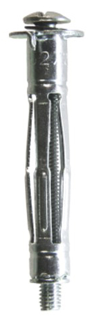 Дюбель имеет трубчатый вид с вырезами по центру, при монтаже дюбель сжимается в длину, а центральная его часть раскрывается в виде зонта, что обеспечивает его надежное крепление. Применяется для крепления к гипсокартону, фанере, ДСП и прочего, в основном для крепления не массивных предметов.