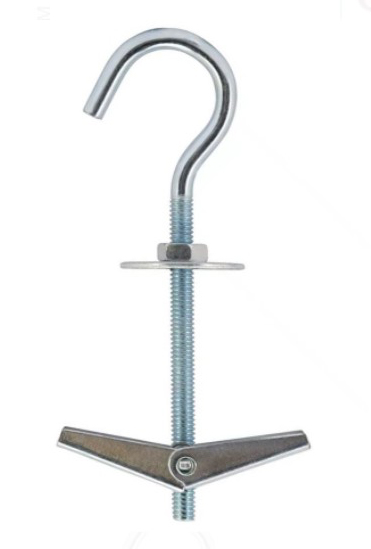 Дюбель складной пружинный состоит из специального пружинного механизма, стопорных складных крыльев и стержня, на котором имеется метрическая резьба. Дюбель изготавливают из стали. Затем поверхность дюбеля пассивируют и оцинковывают. Дюбель применяют для монтажа в такие пустотелые материалы, как потолочные перекрытия с пустотами, ДСП или гипсокартон.