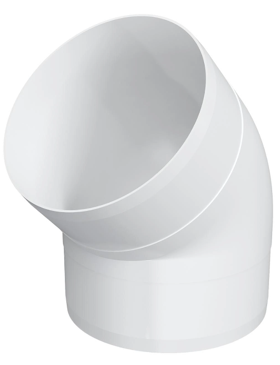 Колено круглое предназначено для соединения воздуховодов соответствующего диаметра под углом 45°. Соединение осуществляется напрямую с воздуховодами. Изготавливается из ABC-пластика.