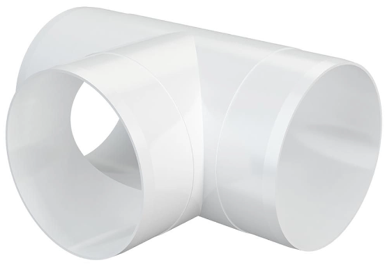 Тройник Т-образный диаметром 100 мм., применяется для организации сложных систем вентиляции, отводов. C каналами соответсвующего диаметра соединяется напрямую. Материал: ABS-пластик.