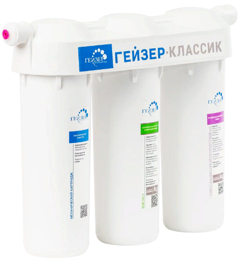Фильтр проточный представлен в белой расцветке и имеет легкий пластиковый корпус. Аксессуар предназначается для очистки проточной воды и действует со скорость. Модель Гейзер Классик оснащена тремя ступенями очистки. Изделие соединяется с водопроводом при наличии соединения 1/4. Предусматривается наличие функций минерализации воды и ионного обмена, а также устранения запахов. Фильтр способствует осуществлению глубокой очистки жесткой и мутной воды.