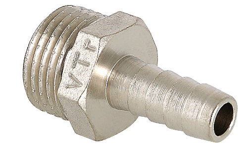 Основное назначение резьбового фитинга со штуцером – подключение к водозапорной арматуре, непосредственно к трубопроводам поливочного шланга. Изделие можно применять также в других системах с неагрессивной к используемым материалам рабочей средой (горячая вода, незамерзающий теплоноситель, сжатый воздух и т.д.). Фитинг выполнен из сантехнической латуни защищенной никелевым гальванопокрытием. Присоединительный патрубок снабжен цилиндрической трубной наружной резьбой с насечками для лучшего удержания герметика. Штуцер для шланга имеет конфигурацию, эффективную для его фиксации. Присоединение шлангов необходимо производить с помощью плоских обжимных хомутов.